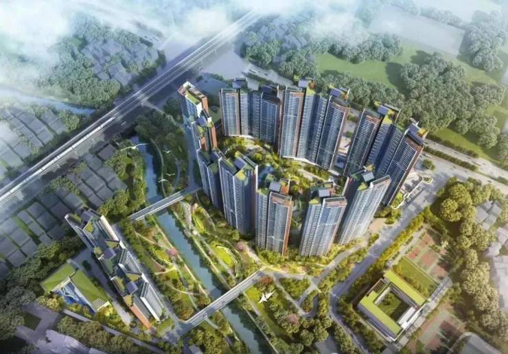 新世界星辉占地约9万平,总建面约45.5万平,规划建有15栋住宅,分两个地块开发,由两座桥连接起来