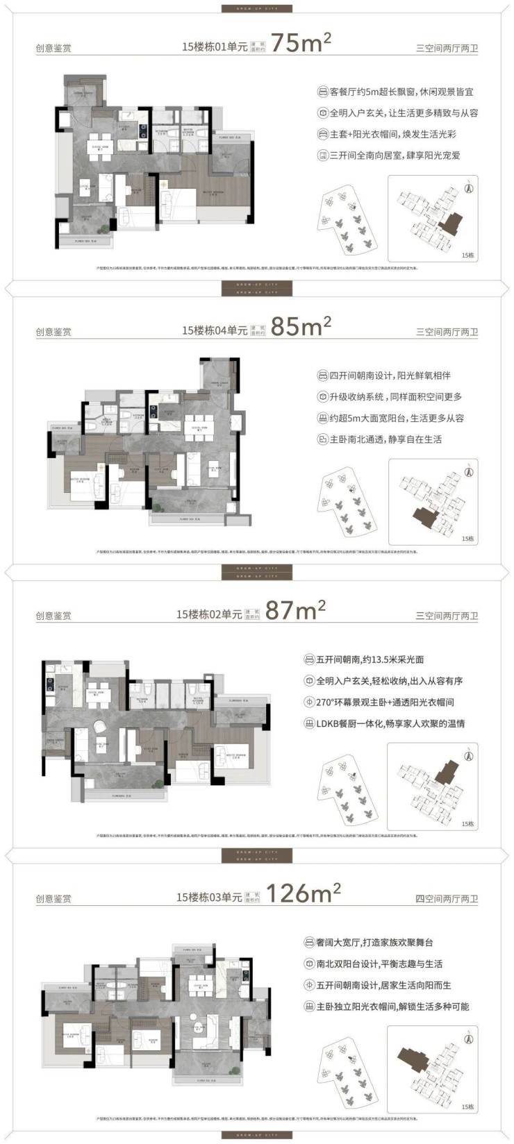 在售户型:建面约75/86/102/125㎡全南3/4空间