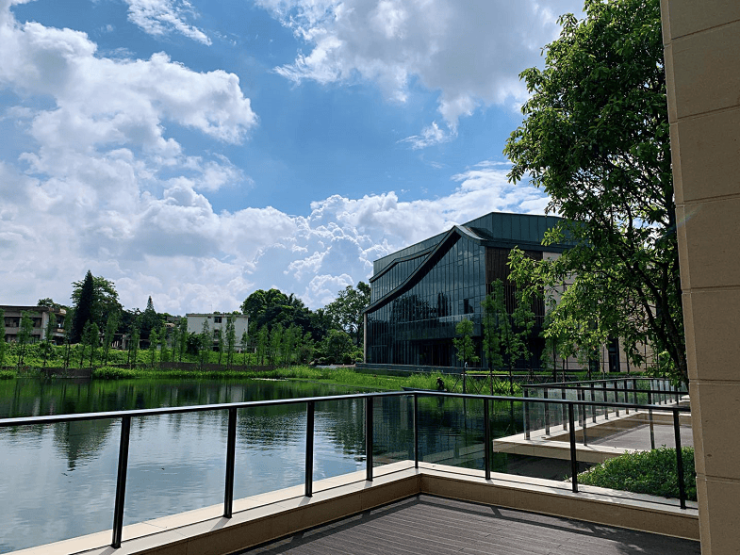 乾月湖导入天然活水,采用“水底森林”生态水处理方式,形成自然生态净化循环系统,打造成四季澄澈的水下森林氧吧。