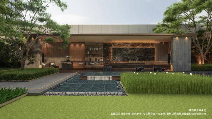 将自然之美与精致工艺融为一体,打造景观会客厅、艺术水景、户外吧台、阳光草坪等静谧空间。