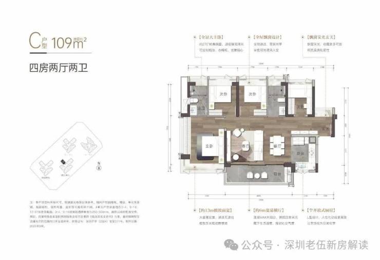 【产品面积】建面约108㎡/109㎡/138㎡海幕纯四房