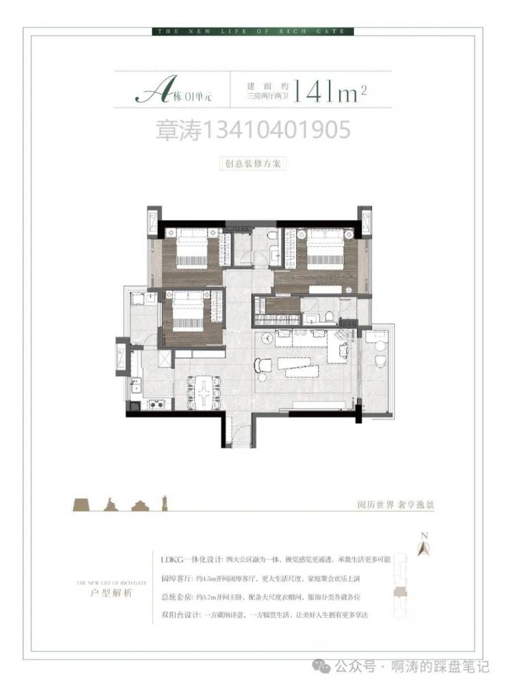 A栋03单元三面采光三阳台139㎡稀缺南向四房户型: