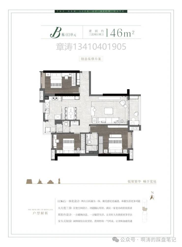 B栋03单元东西对流146㎡大厅大房三房户型: