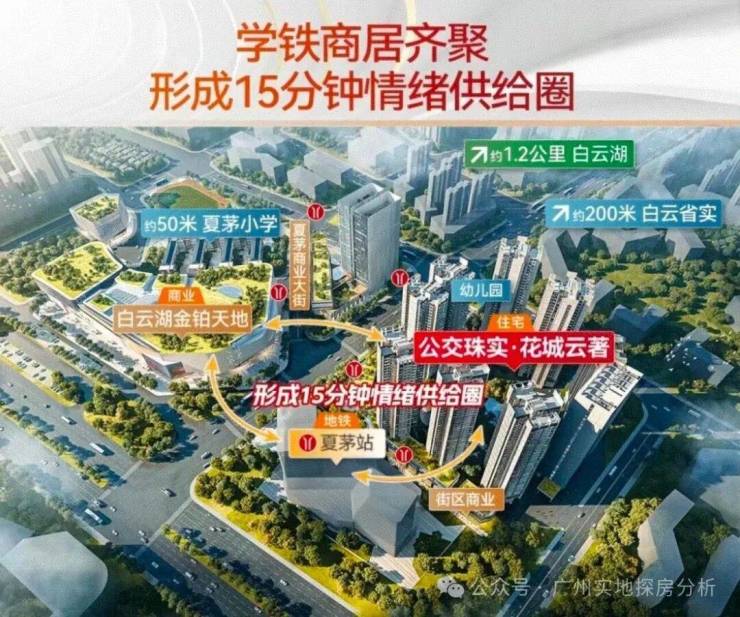 项目配建2800㎡公立9班幼儿园,对口夏茅小学(计划扩容为九年一贯制学校),对口的中学是南悦中学+大朗中学。距白云省实学校约200米(民办,覆盖小学至高中)。
