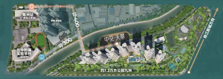 交通网络上,项目牢牢占据着双地铁动脉的交汇点:直线距离约400米处,即是地铁2号线与广佛线交汇的南洲站,可快速直达珠江新城、公园前等核心商圈,高效串联工作与生活。