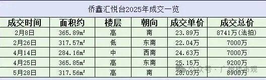 例如:不久前(10月份)成交顶豪广粤尊府得几套,单价都17万+元/方,而侨鑫汇悦台今年以来却以20万+元/方价格成交,相对比较稳定。