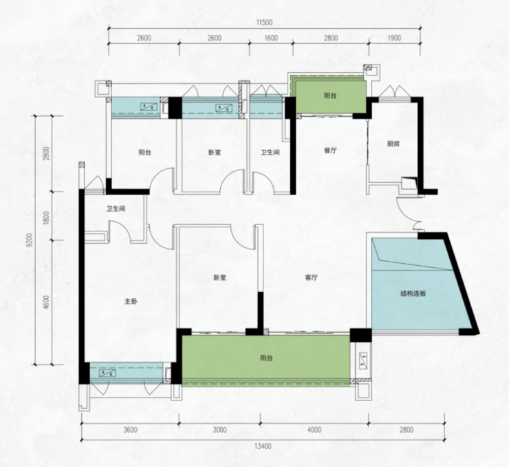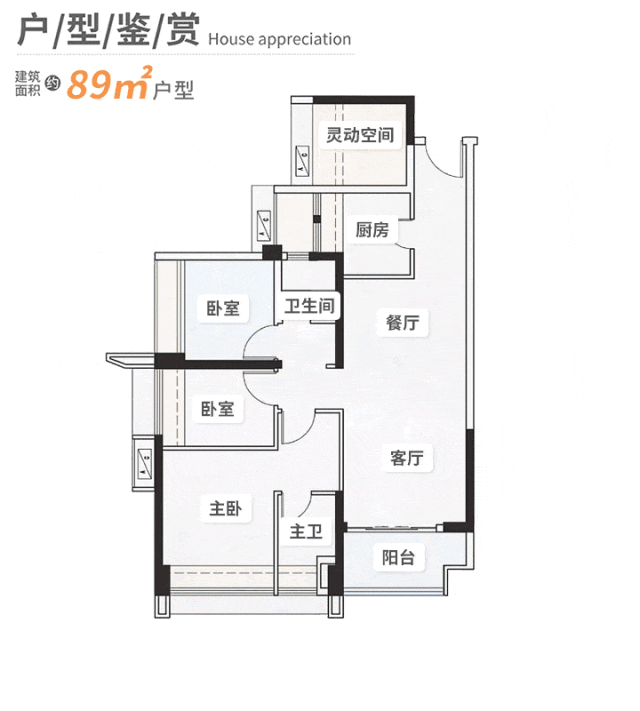 建面约89㎡户型,轻松做到4房,“刚需”的面积做出“改善”的体验。