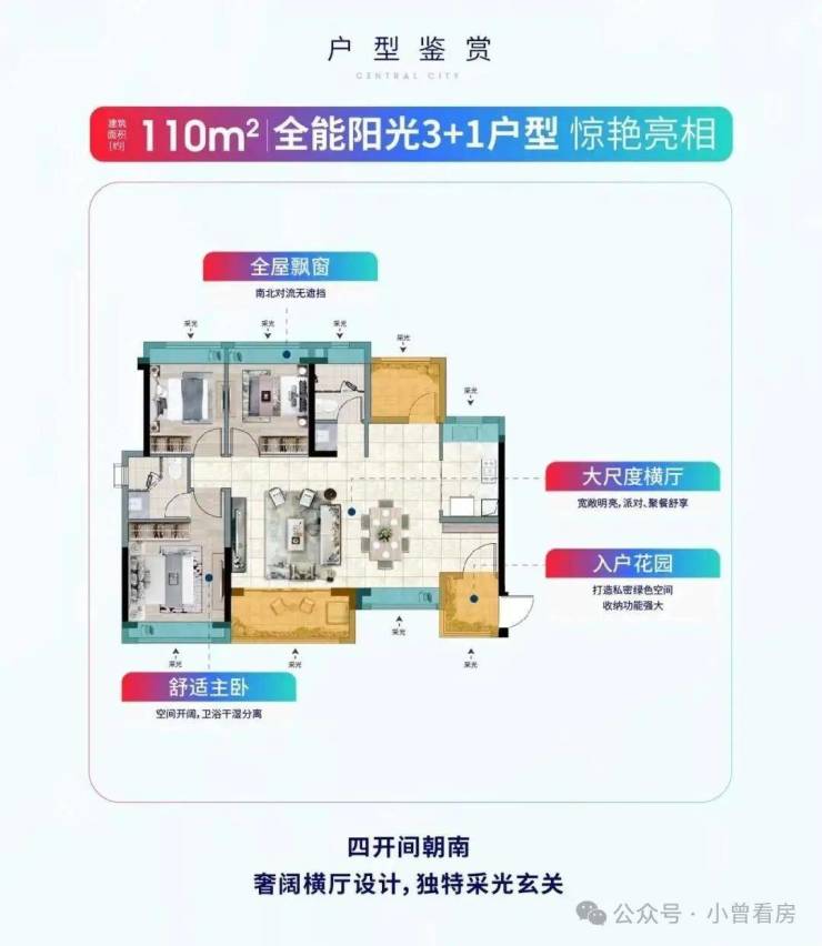 合生中央城提供的户型设计注重实用性和舒适性。项目主推建面约85-197平方米的三至四房洋房和空中复式云墅,满足不同家庭的需求。其中,85平方米的三房户型紧凑实用,适合刚需家庭;而110平方米和123平方米的户型则更为宽敞舒适,适合改善型家庭。所有户型均经过精心设计,确保每一户都能享有充足的采光和优美的景观视野,提升了居住的舒适度和幸福感。