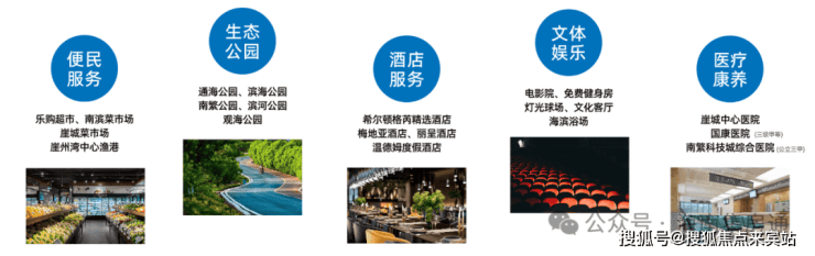 项目园林设计小区园林设计结合海南地域特色,建筑围合成中心花园,设计了泳池、儿童游戏及景观广场,并种植海南本地的乔灌木,配置四季常开的花卉植物的核心绿地作为主景观节点,为居民提供公共活动聚集、休闲、健身娱乐的休闲场所。🏗内部配套项目配有3万㎡生态公园,5万㎡自有商业配套,1家超5星级酒店。业主食堂,健康游泳池,康体乐园、社区服务中心等社区全套医养结合高配置,24小时养生养老全程守护,无忧生活从此一步到位。