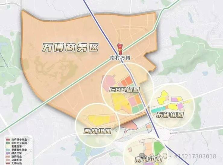 根据规划,整个万博城大致可以分为4个组团,每个板块特性不尽相同:CBD组团、东/西部组团、南部组团三部分。