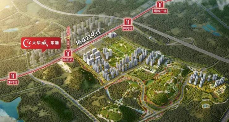 大华城——涵盖大华朱村中心城市地标(规划中)、地铁、教育、产业、商业、生态各项配套,名副其实的一生大城,未来容纳广州东约 30 万人口繁华居住地。