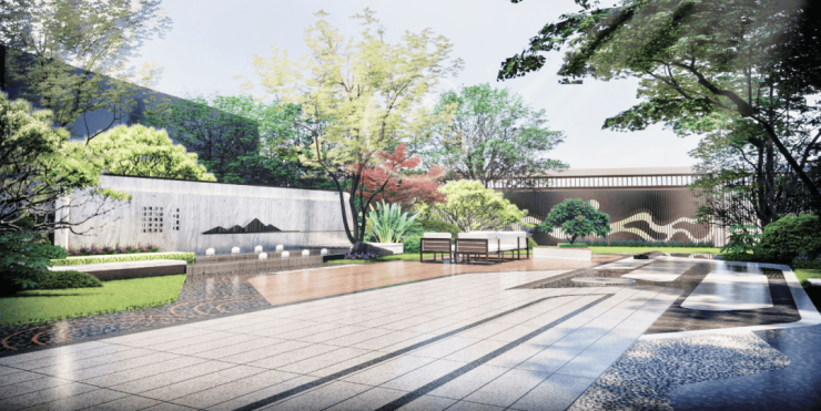 泛舟七境:提取江舟雅韵,打造涵咏自然水韵的岭南优雅格调七境园林;漫步游园,诗画江舟,描绘出快意舟游江水的归家水系。