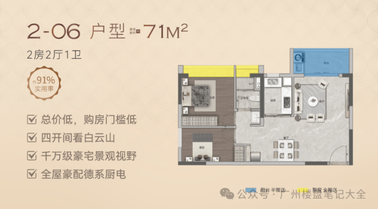 交付标准:参考7星级迪拜帆船酒店,打造越秀区首个帆船造型外立面;全德系厨电、大金中央空调+新风系统组合、视声智能化、精装交标,准现楼今年买今年住