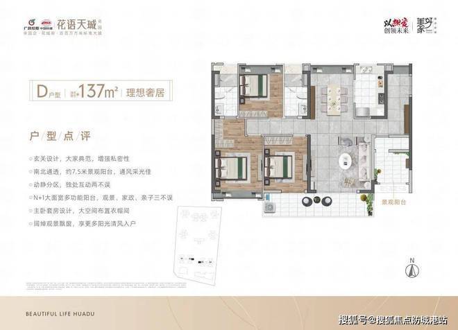 约137㎡3+1多功能空间,约7.5m观景阳台,南北对流,阔绰主套,带步入式卫生间,像更大空间,满足三代同堂