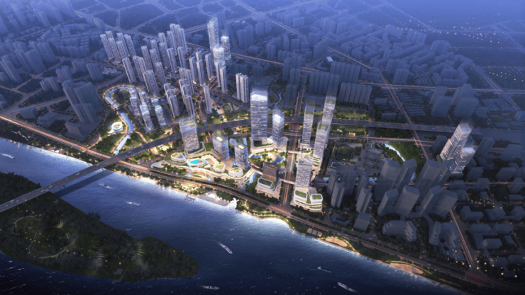 越秀天荟江湾项目,位于海珠区西南部,一线临珠江后航道,滨水而建,商业建筑面积约55万㎡,集景观Loft公寓、大平层豪宅公寓,街区商铺、甲写大型商业综合体及地下商城于一体,将打造成为珠江后航道首个大型滨江综合体。