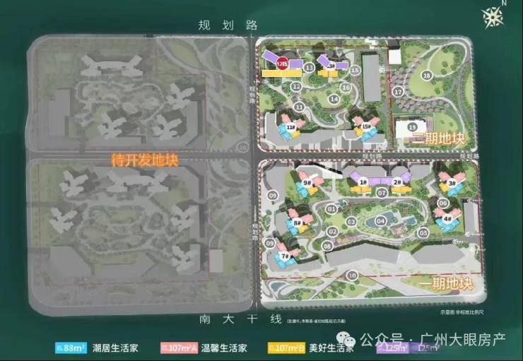 现在主要在售一期跟二期,一期包含9栋建筑,共计1533户,于2022年6月开盘,精装准现楼,整个项目预计于2026年全面竣工。