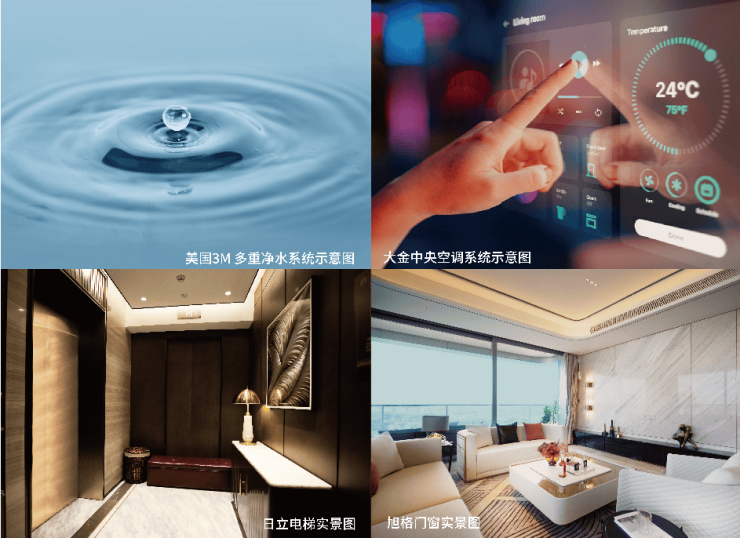 当智能科技结合现代居所,理想人居得以升华。采用国际一线品牌交付标准,引入美国3M多重净水系统、日立电梯、德国旭格门窗与大金中央空调系统。