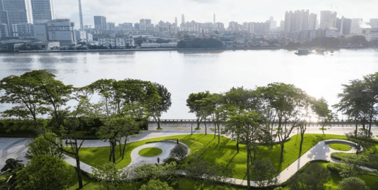 项目处于三江环抱地,家楼下纵享无界亲江,揽广州市区唯一2.4km至美江岸线。社区举步可达江岸休闲公园、滨江文化公园、广钢中央公园,一江三园的绿养生活体验。