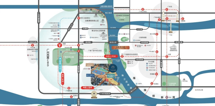 地铁:地铁10、11、22号线(在建中)三地铁交汇,串联天河区、白云区、越秀区、荔湾区和海珠区,连接广州火车站、广州东站等大型交通枢纽,便捷出行;