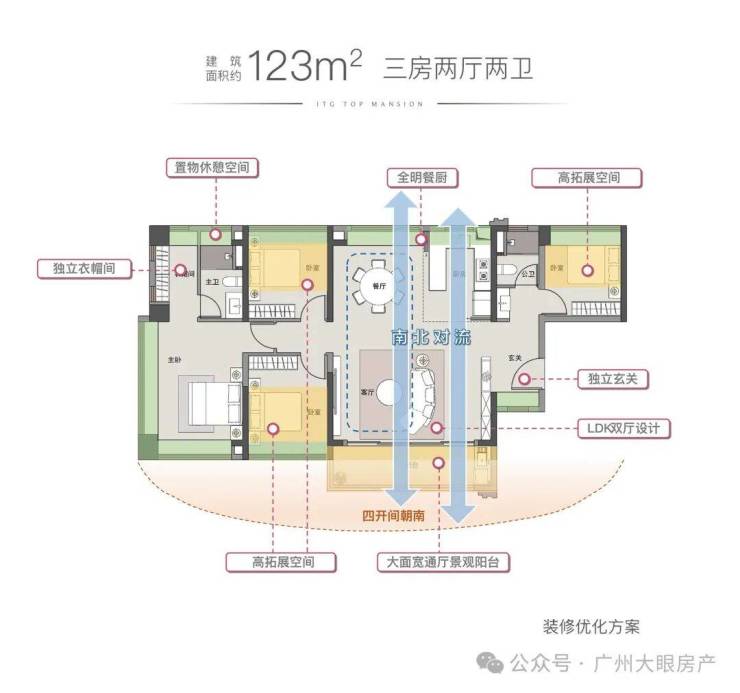 123平四房,大方厅+开放式厨房,三面采光+飘窗,主卧超豪华,三面采光,带大衣帽间。