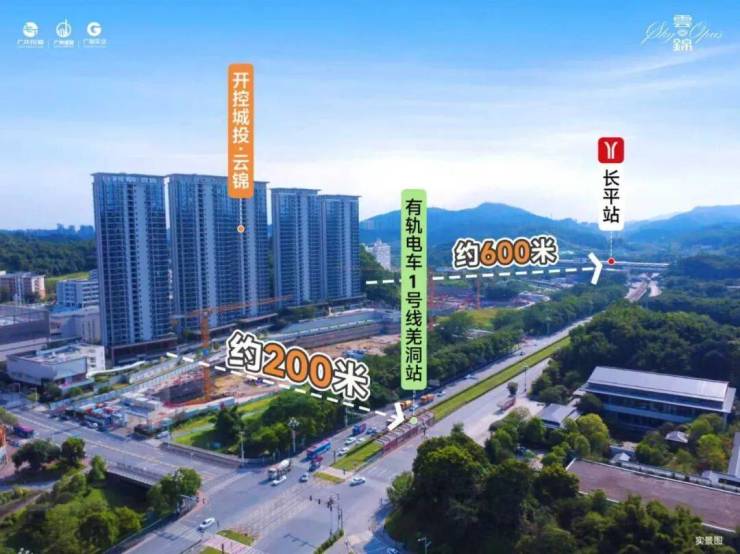 开控城投·云锦项目位于广州市黄埔区永顺大道与萝岭路交汇处西南方向,紧邻地铁21号线长平站(约800米)和有轨电车1号线羌洞站(约200米)。开发商由广州开发区控股集团有限公司、广州城投集团、广报实业三大国企联合开发,项目公司名为广州凯龙置业有限公司。