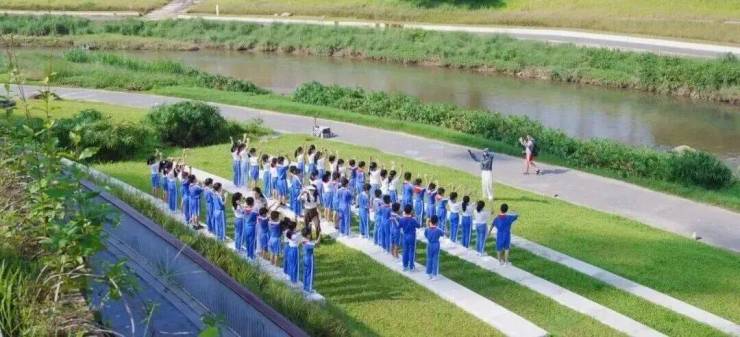▲学生在河边上课 | 图源:龙外(集团)行知学校