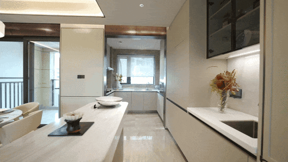 深谙层峯人物对生活品质的极致追求,以中西双厨的设计匹配多元烹饪需求,中厨以高效烟机掌控爆炒烟火,西厨岛台承载咖啡沙龙与冷餐艺术。移门开合间,中西烹饪哲学在此默契相融。