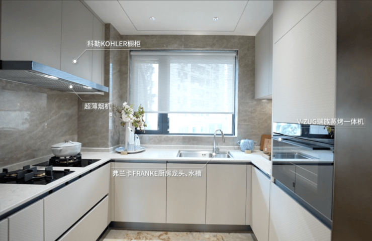 东园公馆以全球顶尖品牌阵容,诠释对传世匠心的坚守。厨房精选瑞士百年奢华家电V-ZUG瑞族蒸烤一体机,演绎现代烹饪艺术;科勒橱柜选用进口肤感PET面板,融汇手工编织纹理与抗蚀防指纹科技,呈现高贵而松弛的日常质感;弗兰卡厨房龙头与水槽以红点奖设计及无缝焊接工艺,历经50万次测试,诠释“永不妥协的耐用”。