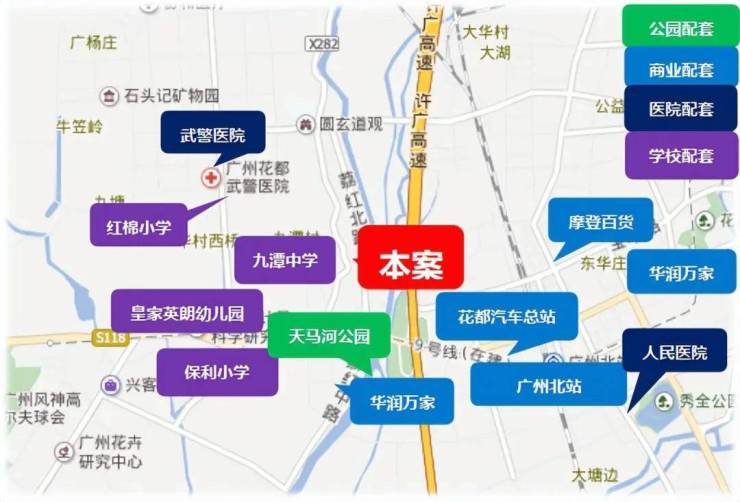 · 医疗:约1.8km胡忠医院、约2km广州市花都人民医院