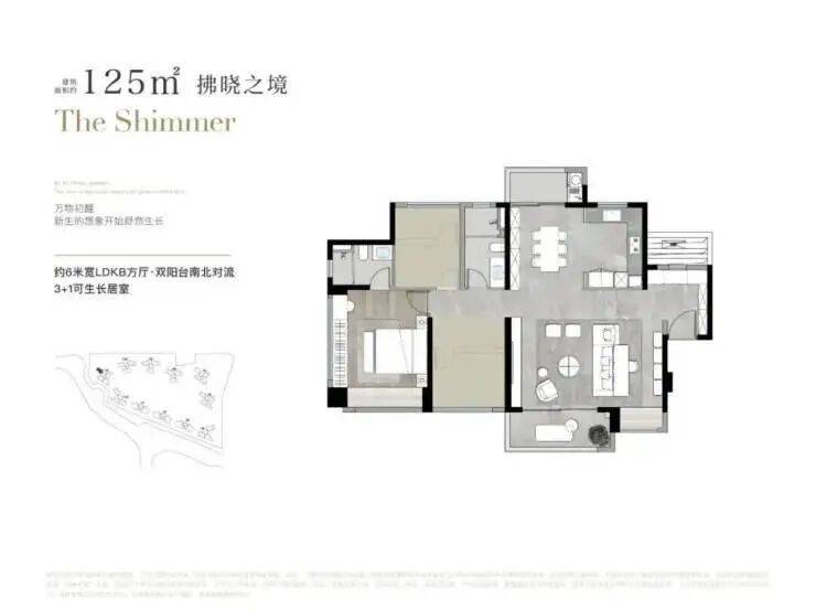 125㎡的 3 室 2 厅 2 卫是刚需向的入门户型