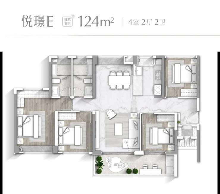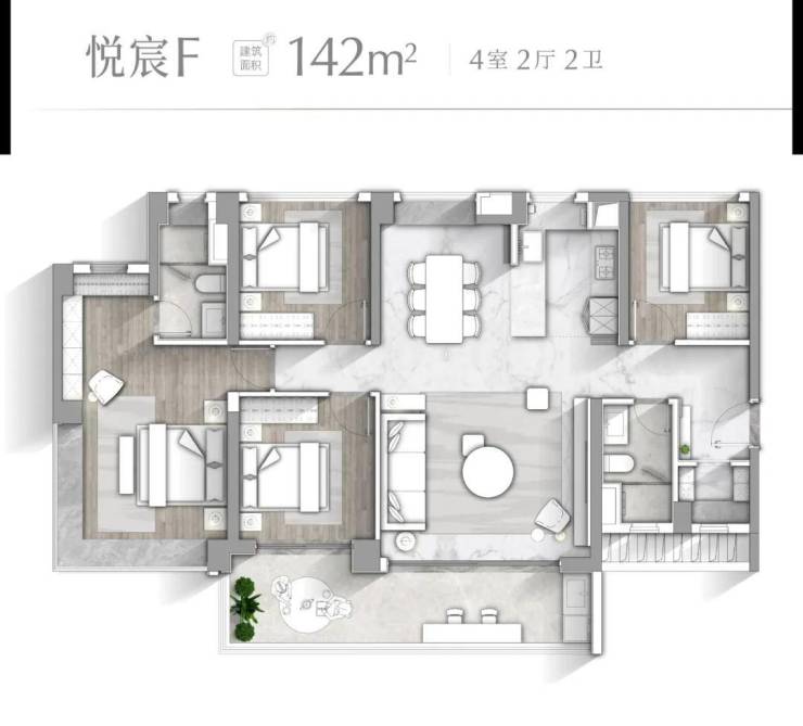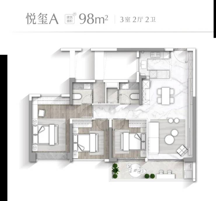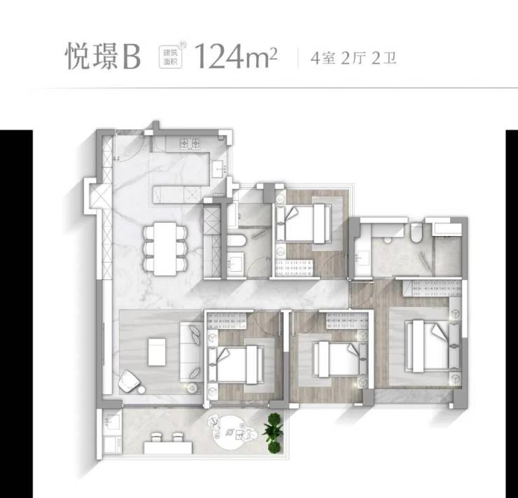 厅卧空间灵活改造约8.4米双面宽阔景阳台,匹配全生命周期使用