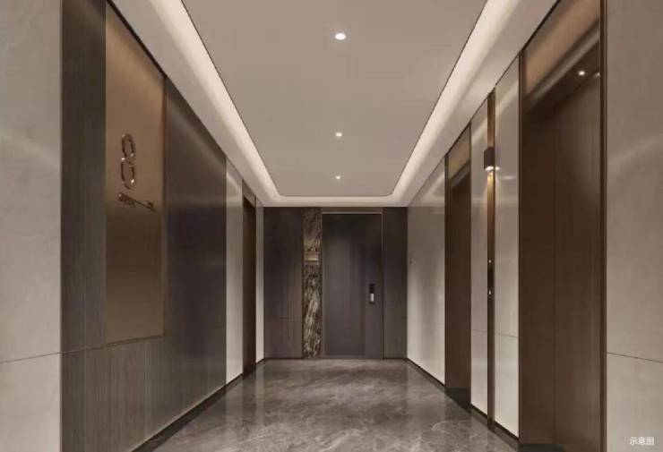 独立电梯厅:一梯一户、入户子母门、对景玄关,赋予归来的尊荣仪式感,把悦系高定镌刻进生活,浸润一场优雅的归家巡礼。
