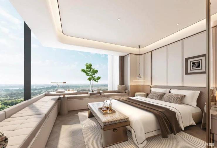 约40m²豪华主卧套房:主人定制生活场,全转角飘窗,IMAX景观视野,同时配置独立卫浴间、步入式衣帽间,置身其中,感官和心灵都将是全新的触动。