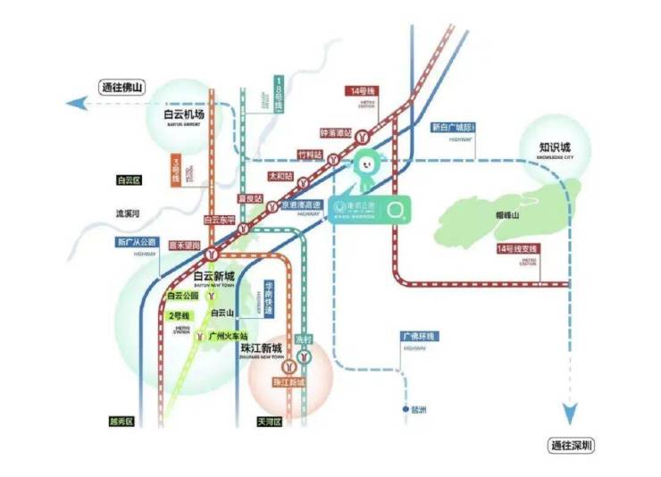 5.新白广城轨(在建中)1站白云机场,南向通达东莞和深圳