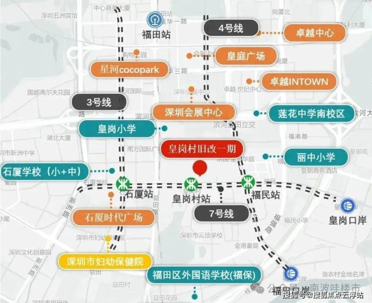 交通:紧邻地铁7号线皇岗村站。往西一站抵达石厦站,可无缝换乘3号线;往东一站到达福民站,能便捷换乘4号线和10号线。