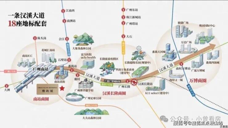 周边1公里内有新鸿基南站ICC、喜街HeyBlock街区、佳宁娜商业中心、建面超26万㎡的花城汇·南站等大型商业综合体,15分钟可达长隆万博商圈。