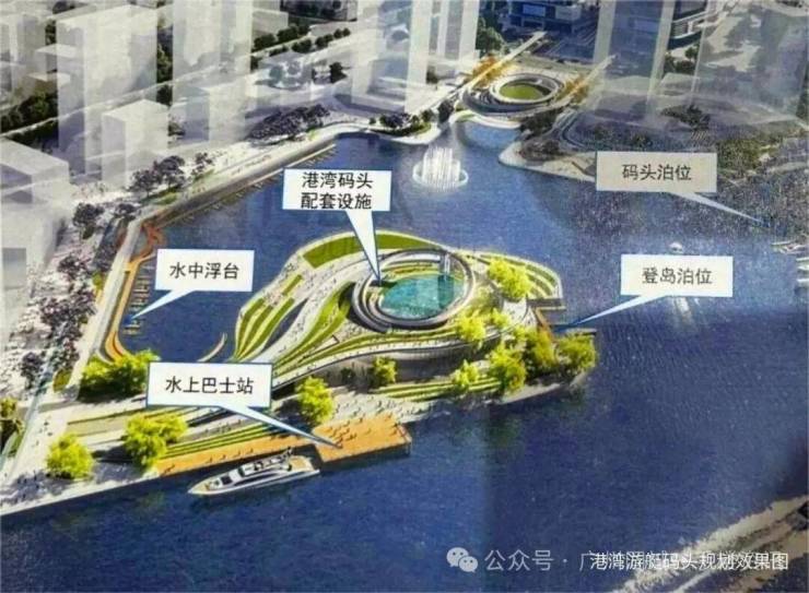 规划水中浮台、游艇泊位、水上巴士站等区域