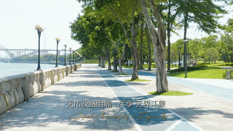 三江汇聚的江岸长廊;实景图