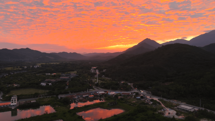若是站在别墅的露台看晚霞,视野更绝 —— 远处的山影被晚霞描上淡红的轮廓,近处的稻田泛着金闪闪的光,社区里的路灯渐次亮起,暖黄的光与天边的霞光呼应,像把 “田园” 与 “雅宅” 拼在了同一张画里。这大概就是观山云邸的独特之处:既能拥有城市住宅的舒适,又能留住自然的诗意。
