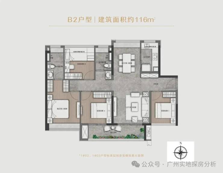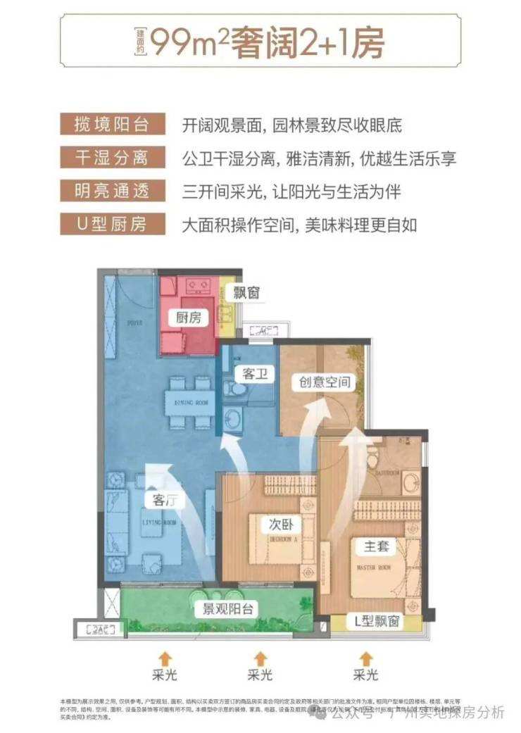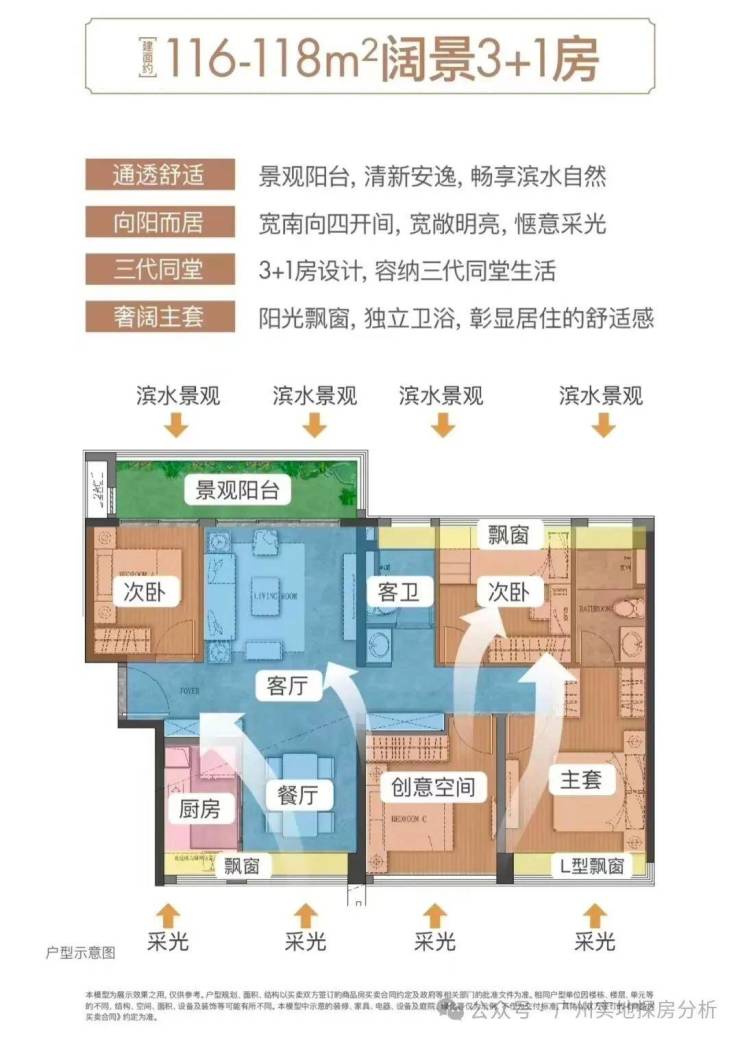 6、产品品质,建发房产作为《财富》世界500强企业旗下品牌,以新中式精工著称。户型设计南北通透,得房率高达86%-88%,主力户型99-142㎡,满足刚需与改善需求,部分户型带露台、飘窗,景观视野佳。