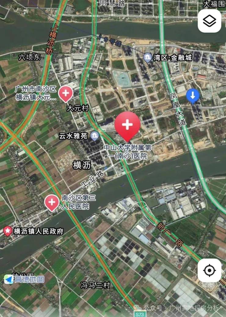 中大附一南沙医院直线约1.4公里、中大附属口腔医院直线约1.6公里、省中医南沙分院直线约5.4公里、市妇幼医疗中心南沙分院直线约6.6公里。