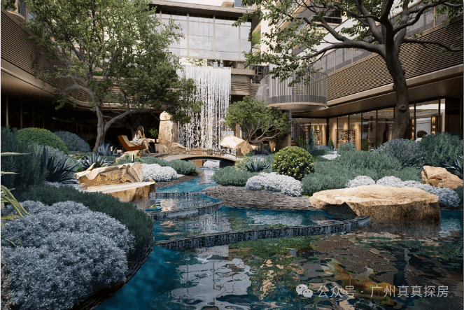 3.紧邻“岭南四大名园”之首余荫山房,承袭百年文脉,社区内复刻岭南园林景观,如飞瀑下沉庭院、清芬阶、晓语间等,营造出浓厚的文化氛围和自然意境,归家过程充满仪式感。