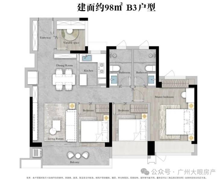 产品以主打刚需,有88㎡、98㎡、108㎡三至四房