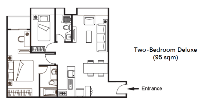 户型二(约24套) 94㎡(8套)与99㎡ (16套)两房一厅