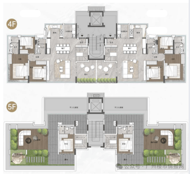最后一个户型是是很多人喜欢的,4楼124㎡四房三卫,全广州独一份的可变复式户型。层高随便你设计,带顶楼专属花园,种花养鱼、喝茶赏月,能装下你所有的生活想象。