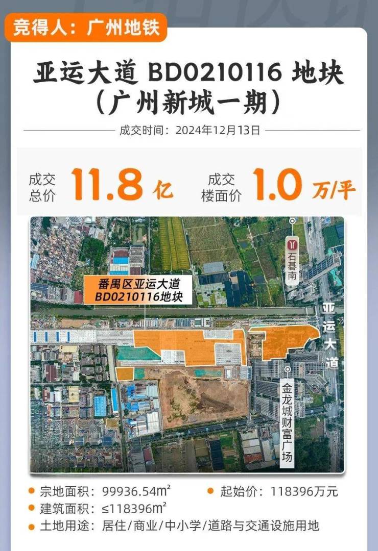 去年12月,广州新城停车场一期地块(亚运大道BD0210116地块)被广州地铁地产以底价118396万元拿下,楼面价约为1万/平(未扣除配建)。