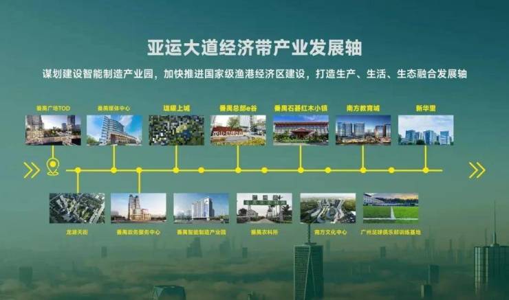 值得注意的是,以番禺广场商圈为起点,连通到莲花湾汽车产业带,“第二条南大干线”千亿产业轴已在酝酿。亚运大道沿线,密布番禺总部E谷、智能制造产业园、丰邦智造产业园等节点,这里将是番禺的“智核”所在,也是番禺未来所在。