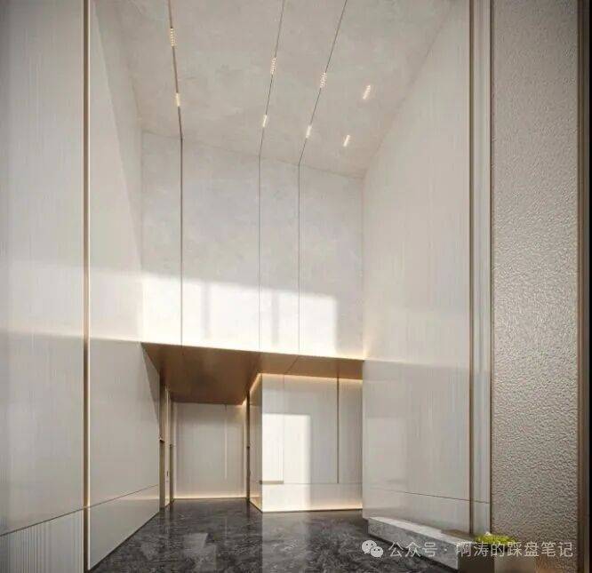 ✅广州首个公寓公区与住宅同品质(一般公寓公区成本为住宅三分之一),大面积采用岩板及奢华金属点缀,嵌入式金属踢脚,提升空间奢华感,打造归家仪式感