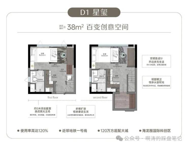 ✅38㎡绝版户型,开间约5.0米,进深约5.2米