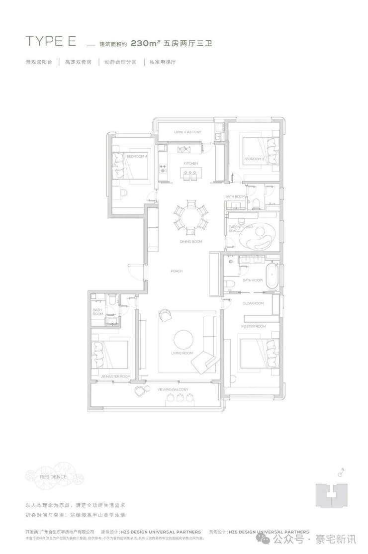 【230㎡户型】观景双阳台-高定双套间-私家电梯厅-双洄游动线